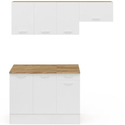 Cocina completa SUBTIL de 180 cm con 5 elementos de encimera de madera y blanco