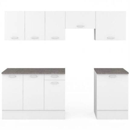 Cocina completa SUBTIL 240 cm con encimera de 7 elementos en blanco y gris