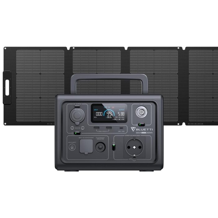 Generador solar BLUETTI EB3A con panel solar PV120S y batería de respaldo LiFePO4 de 268 Wh